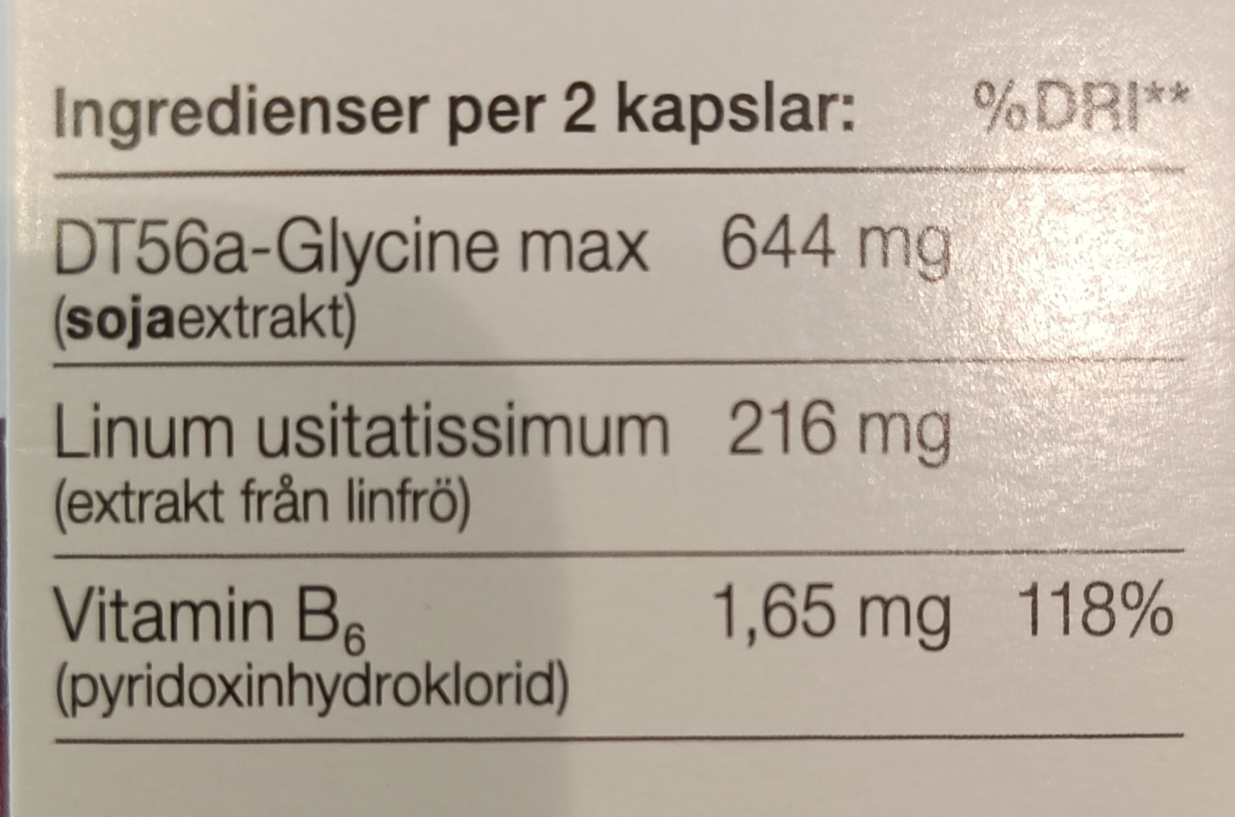 - Glycine max (Soy, соя). Изофлавоны сои в большинстве случаев представлены соевыми гликозидами генистином (genistin) и даидзином (daidzin). Соевые гликозиды претерпевают ряд химических реакций в кишечнике с помощью β-глюкозидазы и превращаются в ERβ-селективные генистеин (genistein) и даидзеин (daidzein). Даидзеин подвергается дальнейшему метаболизму с помощью кишечной микрофлоры, образуя соединение S-экуол (S-equol), имеющее большее сродство к ERβ рецепторам, чем сам даидзеин. Поскольку кишечная флора у людей различается, существует генетический полиморфизм в синтезе S-экуола. Это является причиной вариабельности в степени облегчения симптомов менопаузы у разных женщин. Таким образом, одно и то же средство может быть эффективным для одних, в то время как другие могут не заметить изменений.