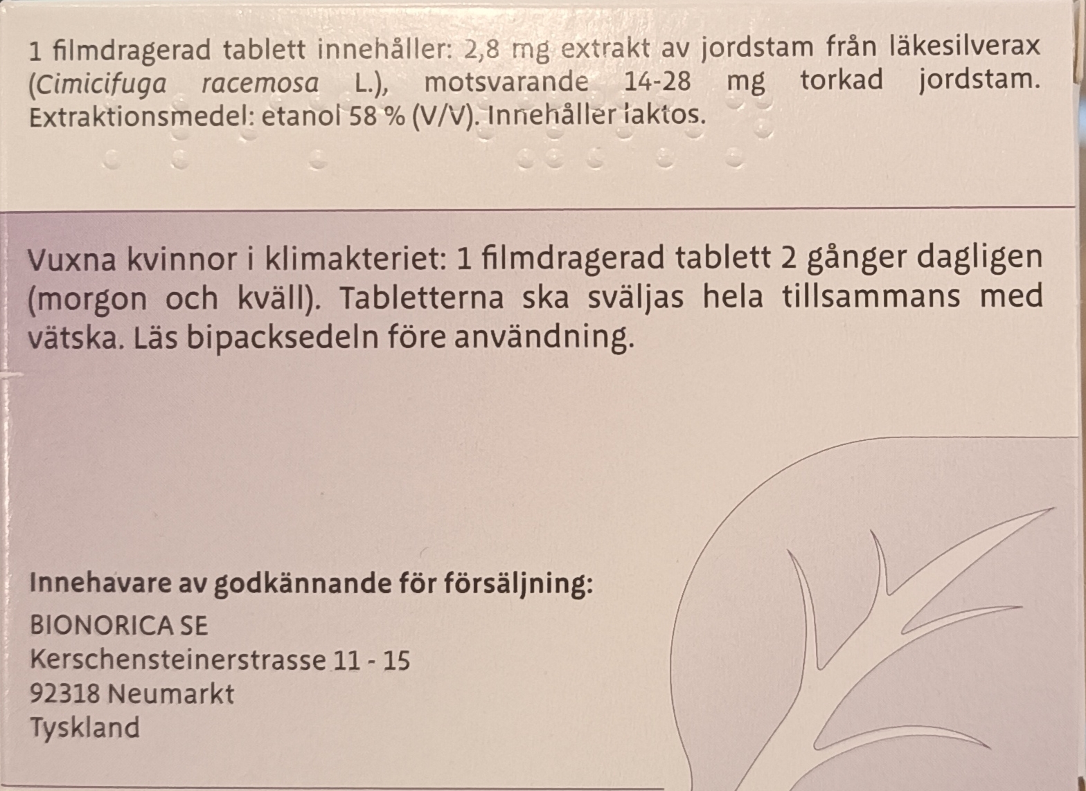 1. Actaea/Cimicifuga racemosa (black cohosh, воронец кистевидный/цимицифуга ветвистая, läkesilverax). Воронец – самое популярное растительное средство для облегчения симптомов менопаузы в США, однако встречается и в других странах. Его корни и корневища издавна использовались коренными народами для помощи женщинам при различных состояниях. Считается, что воронец не обладает эстрогенной активностью, а действует через модуляцию серотониновой системы, напоминая механизм антидепрессантов. Активные компоненты экстракта пока не определены, но среди выделенных веществ N-метилсеротонин проявил свойства агониста серотониновых рецепторов. Результаты клинических исследований существенно различаются. Систематический анализ демонстрирует как исследования, показывающие 26% эффективность экстрактов при отсутствии эстрогенной активности, так и отсутствие какого-либо эффекта по сравнению с плацебо. Как и с другими растительными экстрактами, рассмотренными выше, требуется использование стандартизованных экстрактов и проведение контролируемых клинических исследований, чтобы была возможность сравнивать клинические эффекты.